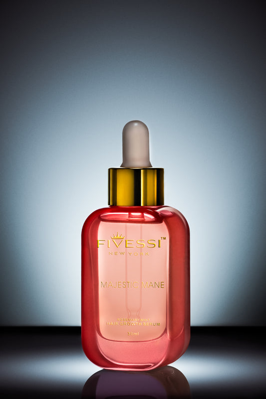 Fivessi Majestic Mane is a potent scalp and hair serum formulated with over 15 nourishing oils and extracts - including Rosemary, Peppermint, Jojoba, and Moringa - to revitalize the scalp and encourage healthier, fuller hair growth.This concentrated blend is packed with antioxidants, essential fatty acids, and Vitamin E, helping to restore balance, improve circulation, and strengthen hair from the root.
