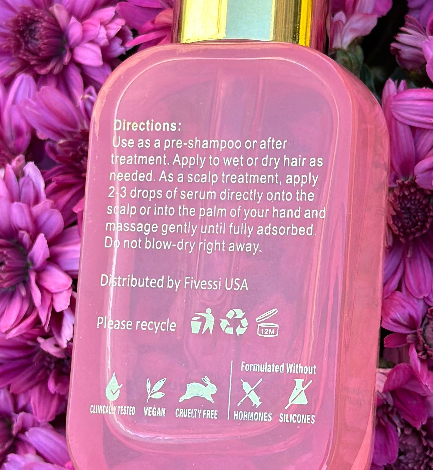 Use whenever and wherever needed to promote hair growth and nourish the scalp. Simply place a few drops of the serum in the palm of your hand, rub your hands together to warm the oil. Using gentle circular motions, massage into your scalp and hair, focusing on areas that need extra attention. Allow the serum to fully absorb. You’ll be left with a nourished, healthier-looking scalp and hair. Can be used on its own or paired with your favorite hair care routine.